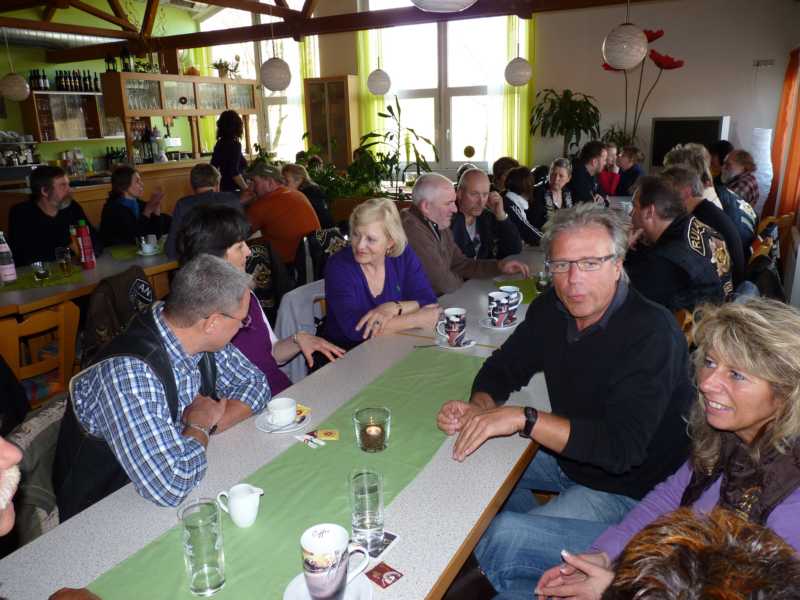 Dort warteten bereits ungeduldig weitere 30 Mitglieder und Familienangehörige, die allesamt auf 4 Rädern , dafür aber trocken eingetroffen waren.