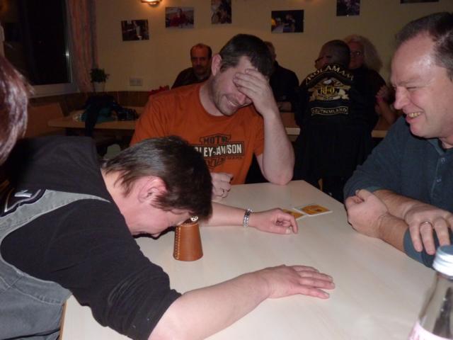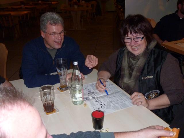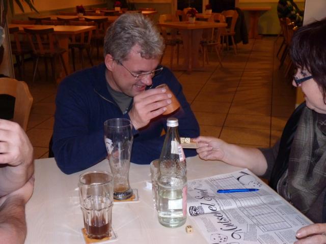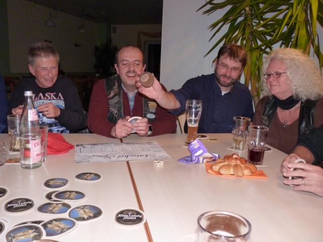 Mit 18 Rulas ging es diesmal an den Start. Aufgrund des Losentscheids wurden die Gruppen gebildet. Wir verteilten uns auf drei Tische und los gings. Manch einer spielte nach dem Motto: Glück in der Liebe, Pech im Spiel. Von jedem Tisch war ein frohes Gelächter zu hören. Man feuerte die an, die gerade vorne waren und bedauerte die, die nicht so viel Glück hatten. Jedem Gewinner einer Runde wurde stolz die Mutschel überreicht. So verging die Zeit wie im Fluge.
