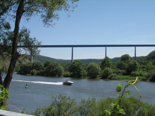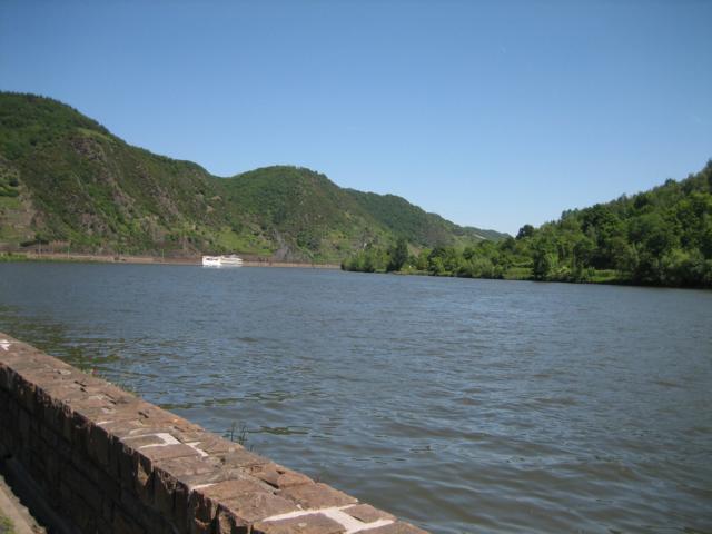 Hier wurde die weitere Fahrt auf der B 416 entlang der dortigen Weinorte Kobern-Gondorf, Lehmen, Hatzenport, Müden (dort befindet sich eine der mannigfaltigen Schleusen, die eine Beschiffung der Mosel bis nach Frankreich bzw. Luxemburg erst ermöglichen, siehe auch Foto), Pommern, Cochem, vorbei an Beilstein bis über die Moselbrücke nach Senheim durchgeführt und über die B 49 entlang der Mosel dann auf der anderen Uferseite die Rückfahrt angetreten.