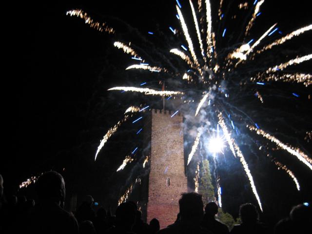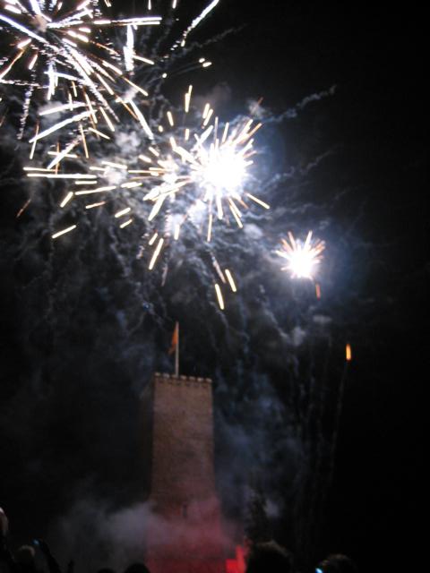Der Höhepunkt am Samstag war ein Musik untermaltes, furioses Höhenfeuerwerk im Bereich bzw. vom Burgfried der Brömserburg. Die Feuerwerker haben sich zwar alle Mühe gegeben, aber der Burgfried ist auch in diesem Jahre allen Unkenrufen zum Trotz stehen geblieben.