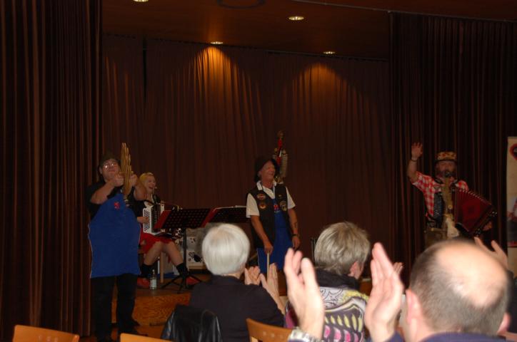 Nach dem gemeinsamen Essen und den Begrüßungsworten von Chief Heinz ging es auch gleich zur Sache. Unser Rula Nobbe und Tochter Ziska, gemeinsam als „Herzblutmusi“ bekannt, brachten binnen kürzester Zeit die Hütte im Südbahnhof zum rocken und sorgten für Wasen- und Wiesn-Stimmung.