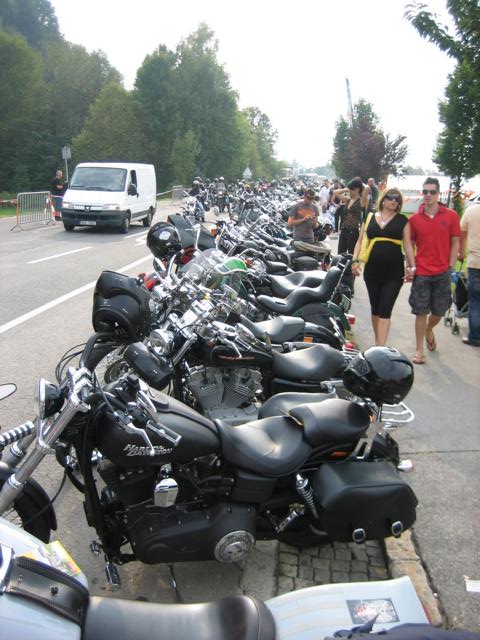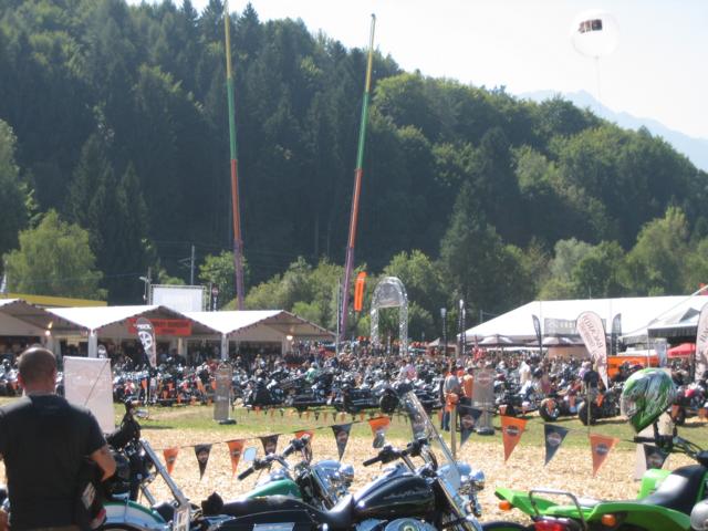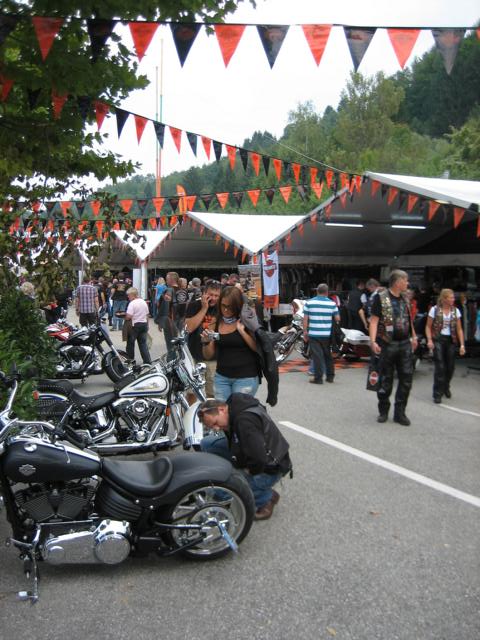 Doch beginnen wir mit der Abfahrt am 26. August 2012; um 01.03 Uhr wurde der komplette Zug (Opel Antara, Excalibure und Roadking Classic) inkl. aller Ausrüstungsgegenstände (von der Badebekleidung bis zum dicken Sweatshirt, hieran erkennt man den passionierten Faak Teilnehmer, nämlich das Wetter ändert sich dort schneller als man es für möglich hält) für einen fünfzehn Tage Urlaub auf die die BAB bewegt um die 860 km in einer knapp zehnstündigen Fahrt abzuspulen. Bei der Ankunft in Egg an unserem Appartement regnete es in Strömen; also alles wie immer. Der Zug wurde entladen, das Appartement häuslich eingerichtet und dann ging es nach einer kurzen Verschnaufpause ab Richtung Arneitz. Hier beginnt es auf dem Eventgelände zwar erst ab dem 31. August, aber eine Vielzahl von HD Fahrern hatte offensichtlich auch einen Frühstart erwogen und dementsprechend war hier inner- bzw. außerhalb des Arneitz Restaurants schon einiges los.
