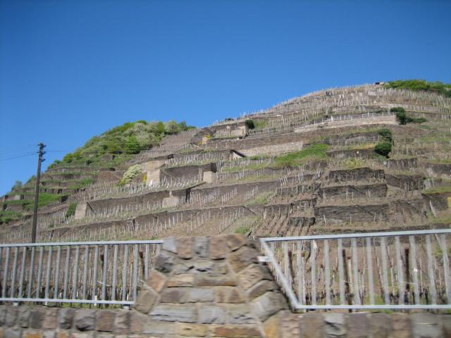 Zum „Feierabend“ gab es - richtig Wein-, aber nicht von der Ahr, sondern aus Ürzig von der Mosel, auf einem unserer Balkone mit Blick in das Rheintal.