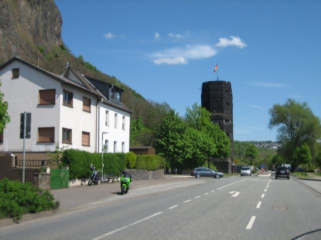Vorbei am „Hotel der Sieben Stäbchen“ (Justizvollzuganstalt Rheinbach und nach der Karthaus in Koblenz bzw. dem „Klingelpütz“ in Köln eine der drei Gefängnisse im Rheinland. Ein paar Kilometer weiter, nachdem wir in Bonn über die Südbrücke den Rhein überquert haben, grüßt dann auch schon der Drachenfels, die Apollonariskirche in Remagen, sowie die Brückenköpfe der ehemaligen Ludendorff Brücke von Remagen nach Erpel, welche als einzige Rheinbrücke intakt von den Alliierten am 07. März 1945 überquert werden konnte und die bis zum ihrem Einsturz am 17. März 1945, durch Beschädigungen und Überlastungen, letztlich dabei half, dem Schrecken des 2. Weltkrieges vorzeitig ein Ende zu setzen. In den Brückenköpfen in Remagen ist im Übrigen ein sehenswertes Friedensmuseum untergebracht. Auf der Erpeler Seite befindet sich im ehemaligen Eisenbahntunnel hinter den Brückenköpfen ein Theater.