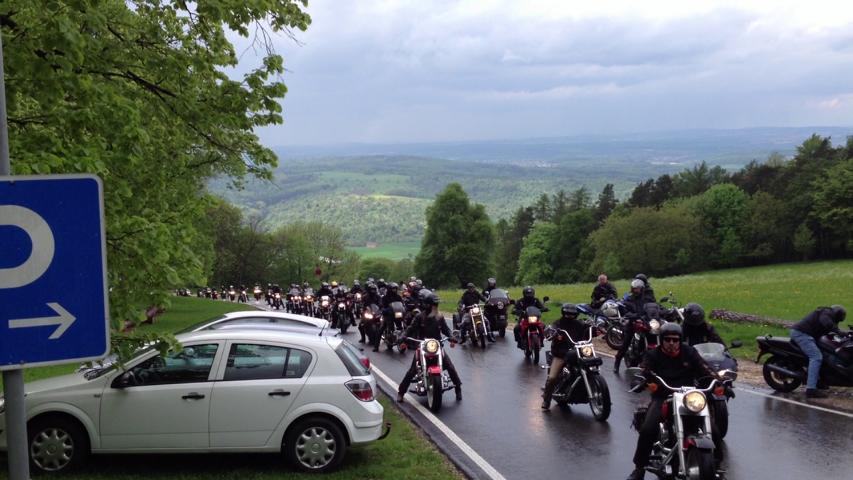Bei nicht ganz so schönem Wetter ging die Fahrt an diesem Samstag über eine gute Strecke mit schöne Straßen zu dem Ziel Burg Teck, wo ein großer Parkplatz die ganze Meute gerade noch aufnehmen konnte. Wie immer beim Tag des Donners wurde dort schon der Grill mit schmackhaften Roten vorbereitet, so dass es recht schnell ging, die Leute mit Essen und Getränken zu versorgen. Alle waren super gut gelaunt, die Stimmung war prima. Die Leute waren alle samt sehr nett.
