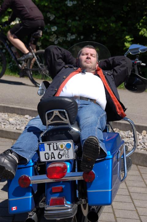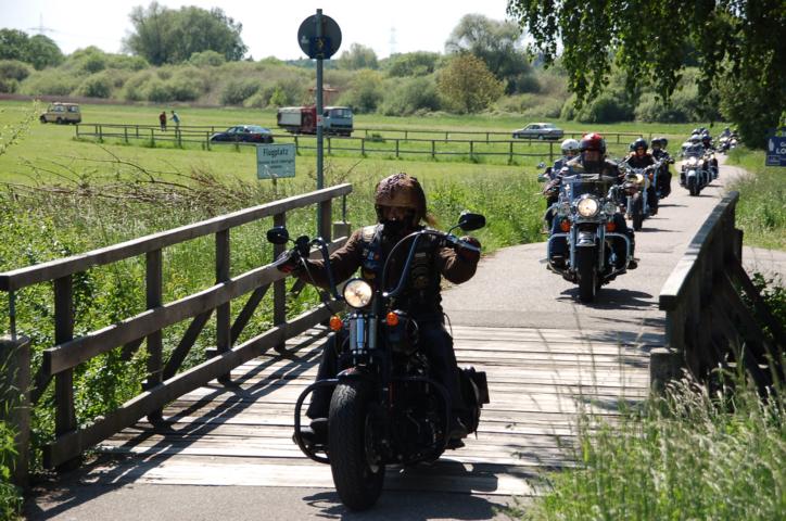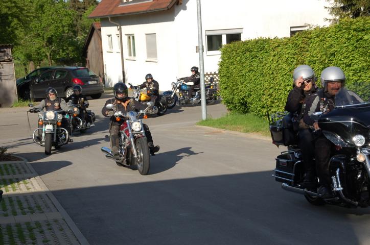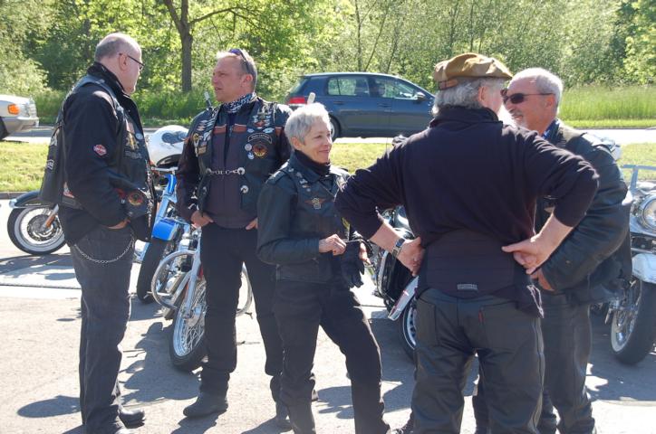 Nach einer kurzen offiziellen Begrüssung und ein paar erklärenden Sätzen von RC Frank nahm die Gruppe mit knapp 30 Leuten den Asphalt unter die Räder – endlich einmal eine schöne Tour, eine grosse Gruppe und alle hatten gute Laune. RC Frank führte die Strecke souverän bis zum ersten Zielpunkt, dem HD-Dealer Ricks in Baden Baden. Nachdem sich die Biker mit den neuesten notwendigsten Accessoires eingedeckt hatten fuhr die Gruppe in das nahegelegene Gartenrestaurant Looping. Leider hat sich dort der gesamte Ablauf etwas verzögert und so kamen wir erst wieder mit fast einer Stunde nach dem Zeitplan auf die Strecke.