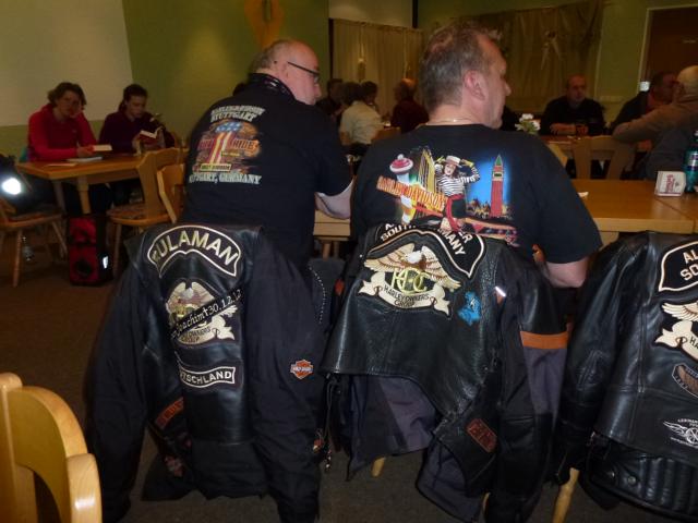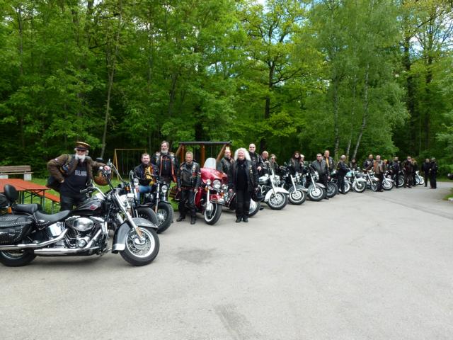 Na, heute sieht das ja garnicht nach grauem Himmel aus! Und wieder füllte sich der Hof der Shell Tanke. Einige Freunde aus dem Allgäu Chapter mussten schon Richtung Heimat aufbrechen, aber dafür kamen etliche Rulaman Members, sodaß wir wieder 25 Bikes waren.
