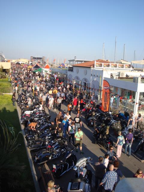 Das Eventgelände war gut ausgesucht. Es lag im Hafen von Ostia und erstreckte sich von einem Ende zum anderen fast über einen Kilometer. Wie immer bei diesen Events gab es unzählige Stände, bei denen man sich mit den notwendigen Utensilien eindecken konnte. Eine große Bühne war direkt am Strand aufgebaut. Die Sonne lachte mit über 30 Grad vom Himmel - also alles perfekt.