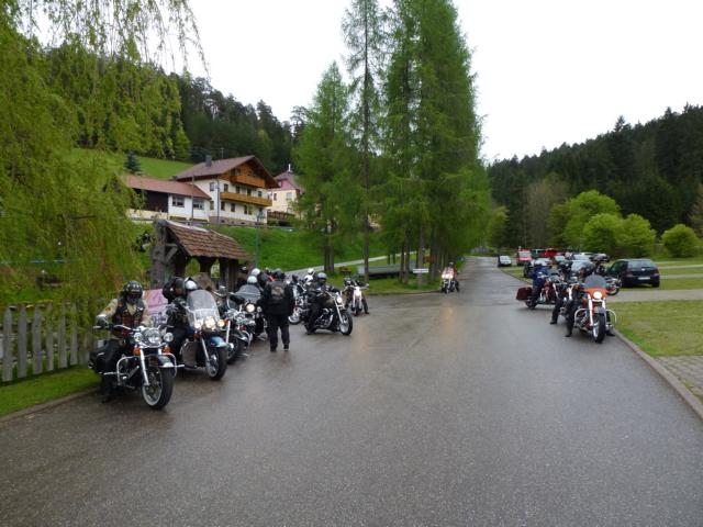 Na, heute sieht das ja garnicht nach grauem Himmel aus! Und wieder füllte sich der Hof der Shell Tanke. Einige Freunde aus dem Allgäu Chapter mussten schon Richtung Heimat aufbrechen, aber dafür kamen etliche Rulaman Members, sodaß wir wieder 25 Bikes waren.