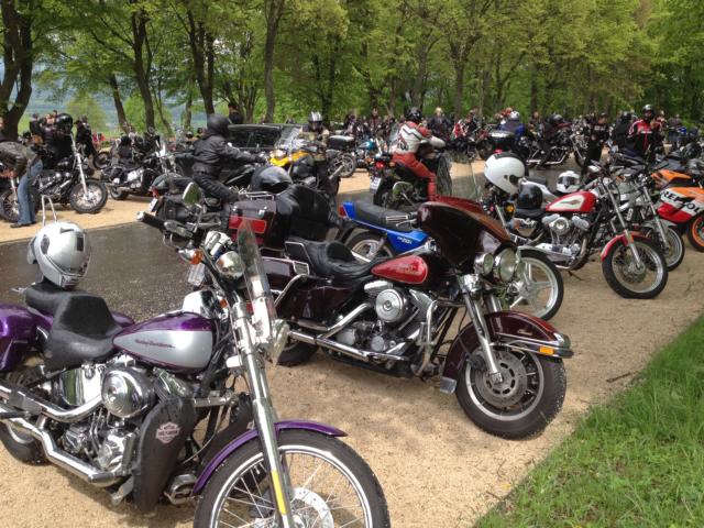 Na, heute sieht das ja garnicht nach grauem Himmel aus! Und wieder füllte sich der Hof der Shell Tanke. Einige Freunde aus dem Allgäu Chapter mussten schon Richtung Heimat aufbrechen, aber dafür kamen etliche Rulaman Members, sodaß wir wieder 25 Bikes waren.