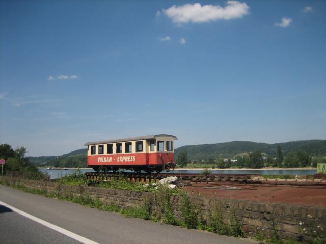 Von Brockscheid Richtung Manderscheid sieht man rechts der Straße die weiteren Maare, Holz- (wird als einziges von einem Bach durchflossen) und Pulvermaar, bevor man in Manderscheid wieder an Burgen (hier die Ober- bzw. Niederburg) von Manderscheid vorbei fährt. Hier wurde ein Schlenker Richtung Osten vollzogen und über Nebenstraßen vorbei an Mayen (Heimatstadt von Mario Adolf), Richtung Mendig und vorbei am Kloster Maria Laach. Hier war aufgrund des Wetters natürlich auch eine Menge los, vorbei am Laacher See, richtig der ist kein Maar, auch kein See, sondern eine Caldera, also ein Einbruchkrater des Laacher See Vulkanes, welcher halt mit Grund- bzw. Oberflächenwasser gefüllt ist. Nun führt der Weg unweigerlich vorbei an den Tönnissteiner Quellen (hier kommt halt das berühmte Sprudelwasser her), nach Brohl, hier kommt das Brohler (Rhodius) Sprudelwasser her, zurück zum „Vater Rhein“ an die Rheinfähre nach Kripp zur Überfahrt nach unserer Heimatstadt Linz am Rhein, wo dann nach 285 km die heutige Tour mit einen Kölsch auf einem der Balkon unseres Wohnhauses mit Blick auf den Rhein endete.