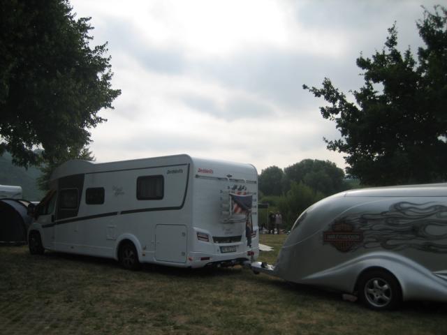 In Ürzig angelangt, fällt als erstes der sehr stark frequentierte Mosel Campingplatz auf. Wohnmobile in allen Größen mit Excalibure bzw. sonstigen Anhängern, Campingwagen, Zeltareas und eine hohe Anzahl von Harley Davidson Motorrädern wertete die Uferzone positiv auf. Da alle Unterkünfte in Ürzig komplett belegt und auch die Ausweichquartiere in den Nachbarorten nicht unbedingt von Vorteil sind (Shuttlebus, Taxi, Fußmärsche etc.), die Teilnehmerzahlen aber seit Jahren stetig steigen, bleibt den „Nachrücker“ gar keine andere Alternative mehr um direkt vor Ort sein zu können.