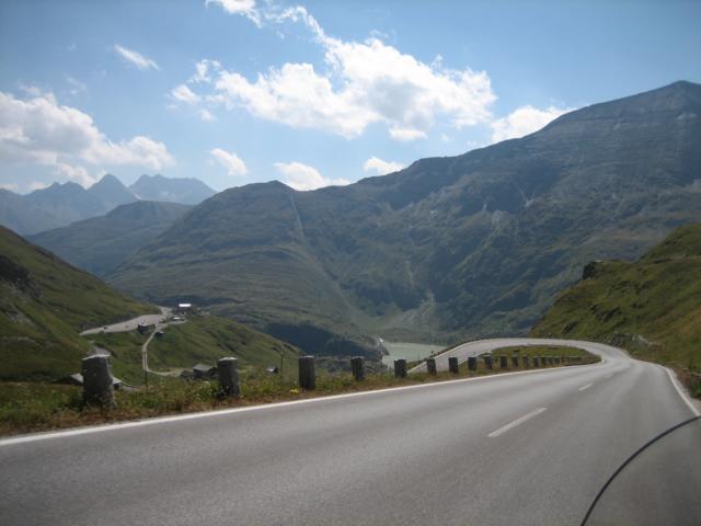 Montags wurden die Weisswandreifen der Roadkingclassic wie jedes Jahr, über Feldkirchen bzw. das Gurktal, Richtung Ebene Reichenau auf die Nockalmstraße, Rücktour mit Umwegen entlang des Millstädter- und des Afritzer Sees geführt. (vgl. Bilder) Dienstags, noch bei bestem Wetter die obligatorische Tour auf die Großglockner Hochalpenstraße, vorbei an den Reißeck Bergen, hier steht auch das Wasserkraftwerk, welches Strom durch die Hochdruckfallrohre des Kölnbreinspeicher im Maltatal produziert, durch das Mölltal, vorbei an dem Jungfernsprung Wasserfall, um auf den 48 km und den 36 Kehren die wunderschöne Landschaft dieser einmaligen Hochalpenstraße genießen zu können. An der Franz Josef Hütte, 2.362 m, bzw. dem Hochtor, 2.506 m, war das Wetter klasse, warm, trocken, blauer Himmel und beste Sicht. Hinter dem Hochtor, also in Osttirol, wie häufig Wetterwechsel, zwar trocken, aber erheblich kühler. Trotzdem wurde die Großglockner Hochalpenstraße insgesamt, wie immer, viermal gefahren und mit „geleichtertem Tank“ die Tankstelle in Winklern angefahren, bevor es entlang der Kreuzeck Berggruppe und dem Millstädter See wieder zurück nach Egg geht. (siehe Bilder).