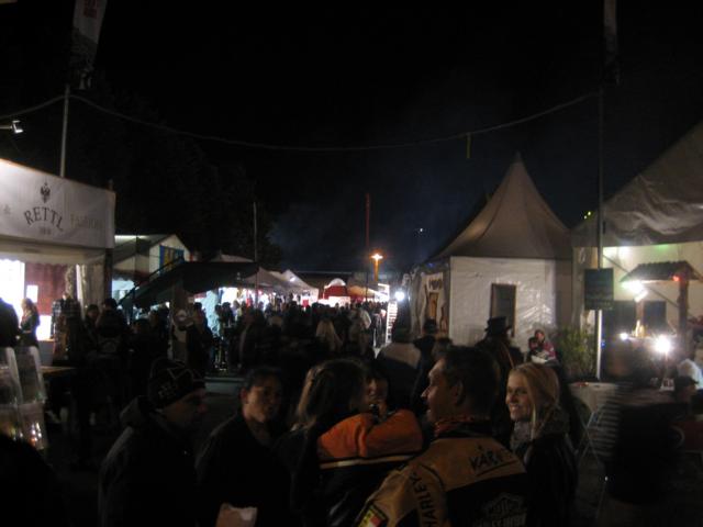 Ab Freitag kommen wie immer unzählige italienische Chapter über die „Grenze“ und bevölkern innerhalb kürzester Zeit die letzten freien Stellflächen auf den Campingplätzen. Für diejenigen, welche nicht rechtzeitig vor Ort waren, stand dann als letzte Lösung, trotz Verbotsschilder, aber von der örtlichen Polizei im Gegensatz zum vergangenen Jahr wieder toleriert, nur noch das kleine Waldstück bzw. Straßenbegleitgrün im Bereich der Abfahrt Ledernitzen bzw. Shell Tankstelle Neuegg zum „Wildcamping“ zur Verfügung.