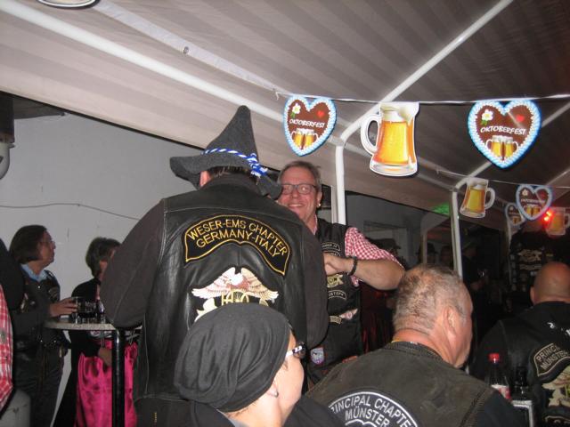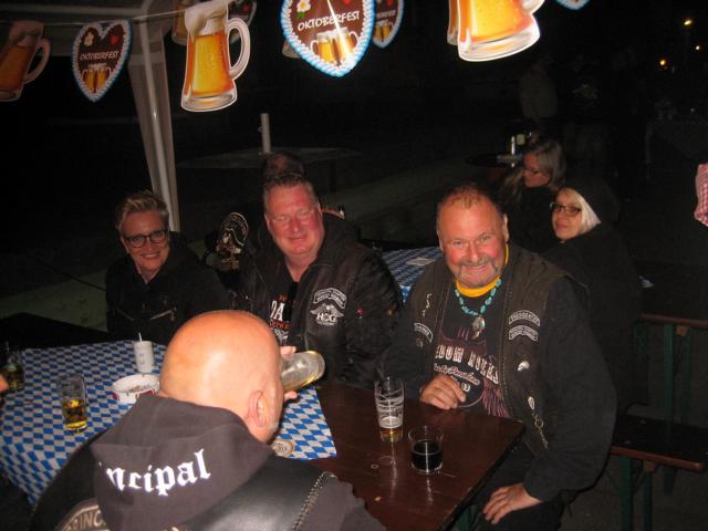 Nach einer kurzen Begrüßungsrunde mit den teilweise angereisten Membern des Weser Ems Chapter im Campus Hotel, Hagen, ging es auch schon mittels Shuttle Service ab zum Clubhaus. Hier war alles für einen zünftigen Abend gerichtet, mit bayerischen Schmankerl, verschiedenen Biersorten etc. und mit der bekannt guten musikalischen Untermalung der Rocking Old Stars vergingen die Stunden in gemütlicher Runde mit den Chapterfreunden des Weser-Ems, Thousend Hill, Ruhrpott, Independence, Principal Chapter Münster, 45 Bad Friends, sowie verschiedenen freien HD Clubs, wie im Fluge und man musste im Morgengrauen feststellen, dass eigentlich noch genug Gesprächsstoff vorhanden gewesen wäre.
