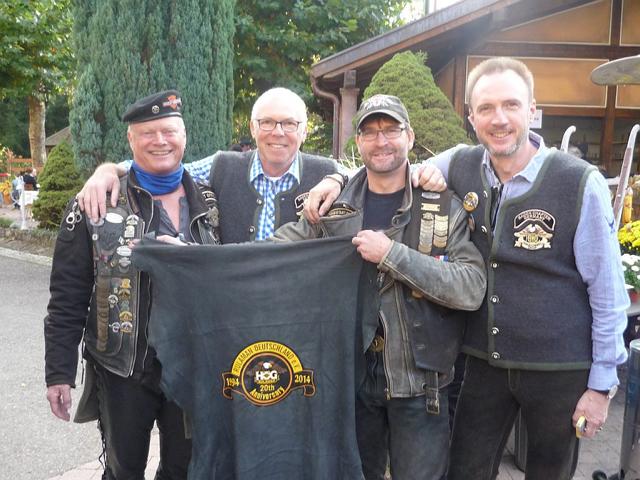 Bei der Ankunft gab es Kaffe und Kuchen, Fleisch und Weißwürste und jeder konnte sich entsprechend verpflegen... Die Geschenkübergabe zum 20-Jährigen in Form eines entsprechenden Leders wurde von Didi und mir offiziell an den Vorstand Joachim und Thomas übergeben.