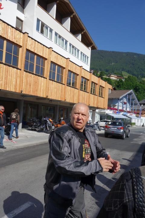 Mit gut 20 Bikes ritten wir der Sonne entgegen, das heißt zunächst durchs Uracher Tal die Seeburger Steige empor durchs Biosphären Gebiet "Schwäbische Alb". Ein kurzes Stück Autobahn A7 von Memmingen bis Ausfahrt Oy im Allgäu damit wir rechtzeitig an der Moorhütte bei Oberjoch waren. Hier trafen wir auf weitere Begleiter des Rhein-Neckar-Chapters. Das Baden-Chapter fuhr direkt zum Hotel. Nach einer deftigen Stärkung und einem erfrischenden Getränk, welches Wolf schon im Vorfeld mit dem Hüttenwirt geklärt hatte, setzten wir jetzt fast vollzählig die Tour fort. Die Sonne lachte und die Straße wandt sich in tollen Kurven durch das Tannheimer Tal. Hinunter ins Lechtal und über das Hahntennjoch nach Imst ins Inntal. Bei immer noch strahlender Sonne erreichten wir unser Domizil das "Alpina"- Wellness Hotel in Wenns / Pitztal.