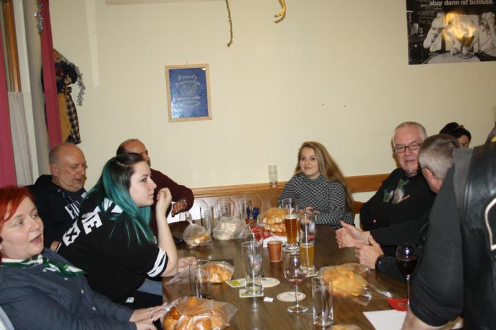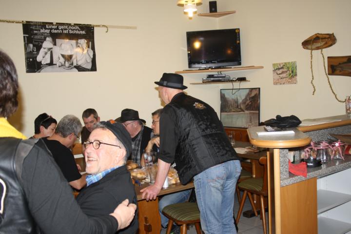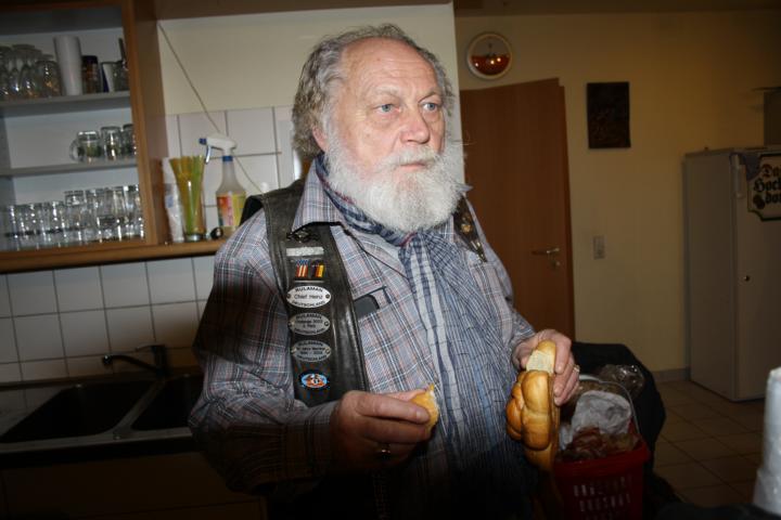 Nach und nach trudelten die Member in der Fischerkischd, unserem Vereinsheim, ein. Die Fischerkischd war so voll, dass wir uns an den einzigen freien Tisch drängen mussten. Dann kamen Heinz und Gudrun mit der Nachricht, dass die frühzeitige Bestellung der Mutscheln bei der Bäckerei für den falschen Tag terminiert war. Kurzerhand wurden alle verfügbaren Mutscheln aufgekauft und weitere Member aktiviert, dies ebenfalls bei den Bäckereien zu machen, bei denen sie vorbeifuhren.