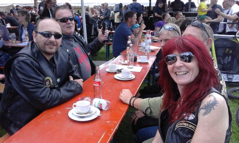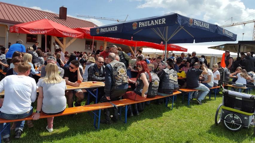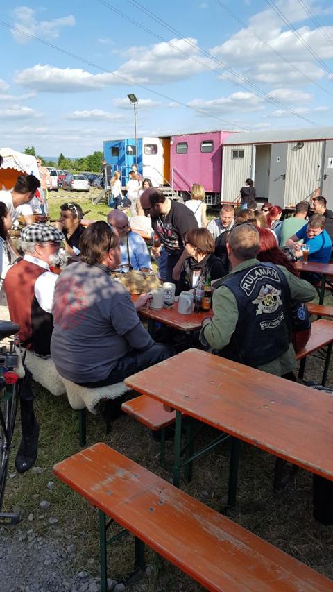 Es war ein sehr gemischtes Publikum vertreten, Mitglieder verschiedener Motorrad Clubs aus der näheren und weiteren Umgebung gaben sich ein Stelldichein. Nach ca. 1,5 stündigen Aufenthalt machten wir uns wieder auf die Rückfahrt über Pfronstetten durch die schönen Alblandschaften ging es nach Eglingen. Hier wurde mal angehalten, Zigarettenpause, Absitzen und das Kreuz wieder gerade rücken, weiter fuhren wir über Gomadingen, Gächingen dem Ausgangspunkt zu. Bei Louis angekommen verabschiedeten wir uns, einige fuhren nach Walddorf - Häslach zum Musikerfest um Nobbe und Horstmar zu besuchen, die anderen fuhren hoim...