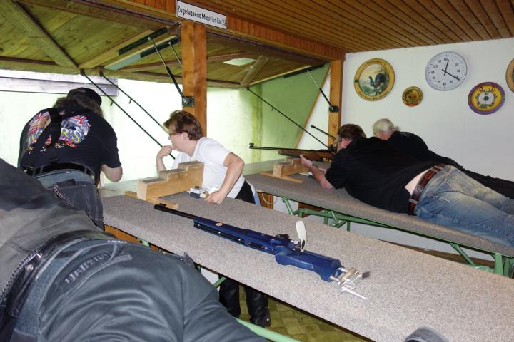 Die erste Station war das Kleinkaliberschießen auf der Schützenanlage in Willmerdingen. Dort angekommen, wurden wir in die Bedienung des Kleinkalibergewehrs eingewiesen, bekamen unsere 10 Schuss Munition und machten das Beste daraus. Nicht jeder Schuss war ein Treffer. Man musste schon eine sehr ruhige Hand und ein gutes Auge haben um in die Nähe des 10er Rings zu treffen.