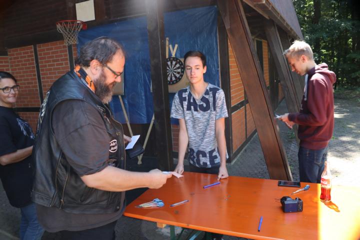Danach fuhren wir weiter zur nächsten Station. Hier wurde der Dart-Wettbewerb ausgetragen. Im TV sieht das ganz lässig aus, wenn bei den Dart-Weltmeisterschaften kurz mal die Triple 20 geworfen wird. Bei uns darf man wohl von einem glücklichen Zufall reden. Jetzt musste man sich erst einmal stärken, bevor die Rückfahrt zum RMC anstand.