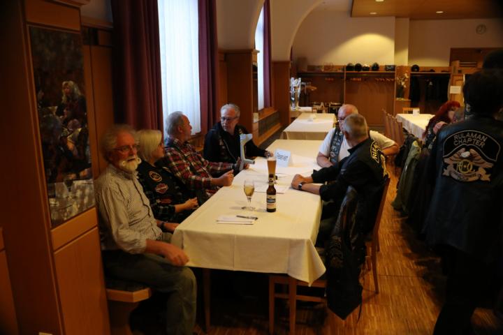 Abschließend erfolgte von dem neuen Director Dieter Baechler, die mit Applaus begleitete Verabschiedung unseres langjährigen nunmehrigen Past-Directors Heinz Nestel, genannt Chief H1, mit der Übergabe eines Präsent-Kuverts und der Ankündigung der Beantragung der Ehrenmitgliedschaft im RULAMAN Chapter Deutschland.