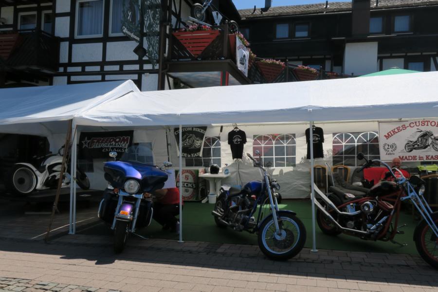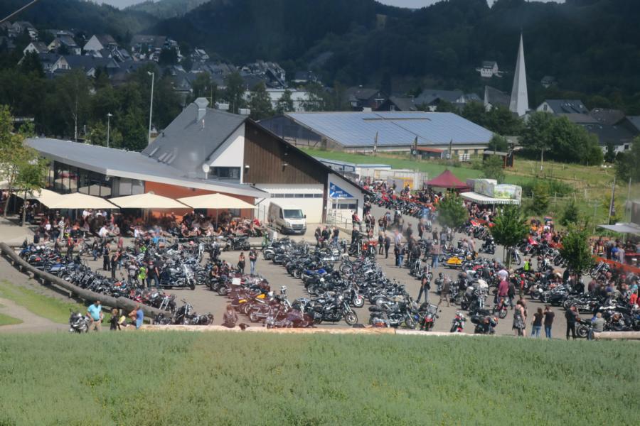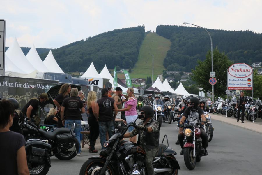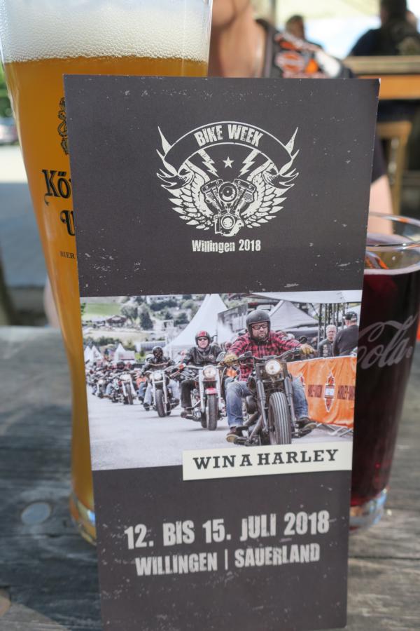 Nach einer entspannten, sonnigen, trockenen Anfahrt erreicht man Willingen und stellt fest, dass, obwohl man sich selber zu den Frühstartern zählte, schon unzählige Harleys am Straßenrand bzw. vor den verschiedenen Hotels stehen. Selbst der Sauerlandstern, sonst ein begehrtes Hotel für Kegelclubs aus ganz Deutschland, war in diesem Jahr, wie von anderen HD Fahrern geschildert, zu neunzig Prozent in HD Hand.