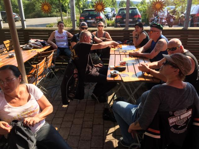 Von der Fähre herunter, schwitzen uns wieder zurück über die schwäbische Alb. Dieser tolle Tag klang bei Eis und vor allem kalten Getränke in einem Restaurant kurz vor Reutlingen aus.