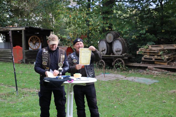 Nach einer 2 stündigen Ausfahrt, die von unserem Road Captain Burghard geführt wurden, trafen wir uns auf der Hutzelranch des Country Clubs Reutlingen. Dort wurden wir von deren Mitgliedern herzlich begrüßt. Da wir diesen gemeinsamen Event am dritten Oktober schon sehr lange durchführen, kennt man sich eben.