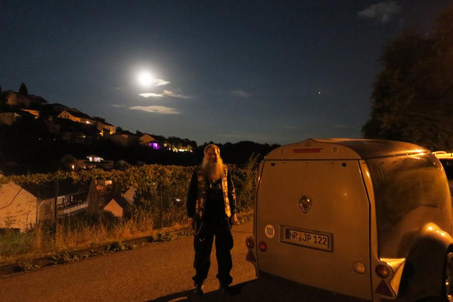 Abfahrt am Sonntag, dem 25. August, um 22.20 Uhr, Vollmond, nachdem am Vortag alles Notwendige an Bekleidung, fußend auf den Erfahrungen bzgl. der stets wechselnden Witterungsverhältnisse, für den Aufenthalt auf der EBW in den Antara, bzw. die Roadkingclassic in den Excalibur, verladen wurde und raus auf die BAB A 3.