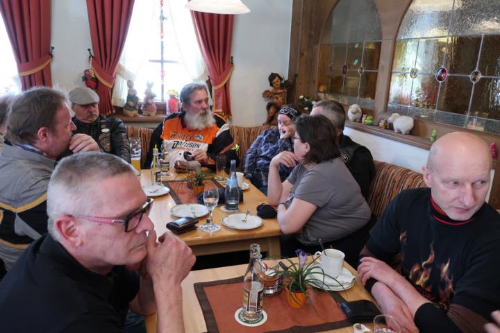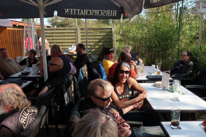Aufgrund des straffen Terminplans verweilten wir nur kurz. Leider starte bei der Rückfahrt die Maschine von Gerd aufgrund technischer Probleme nicht mehr. Holger hatte die rettende Idee, die Maschine 100 Meter vom Ausflugslokal wegzuschieben. Die Funkfrequenzen der elektronischen Handscanner der Bedienungen und die der Harley vertrugen sich nämlich nicht.