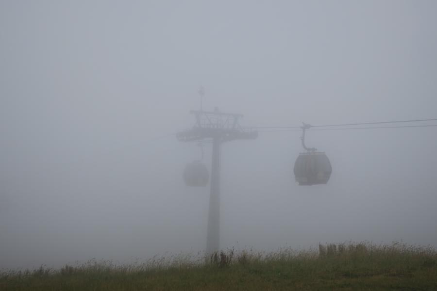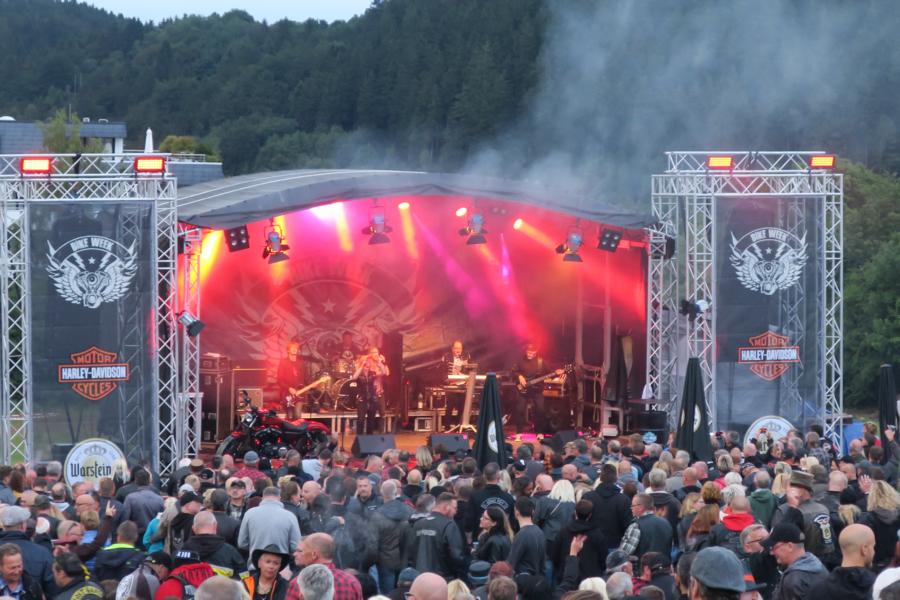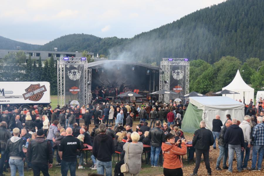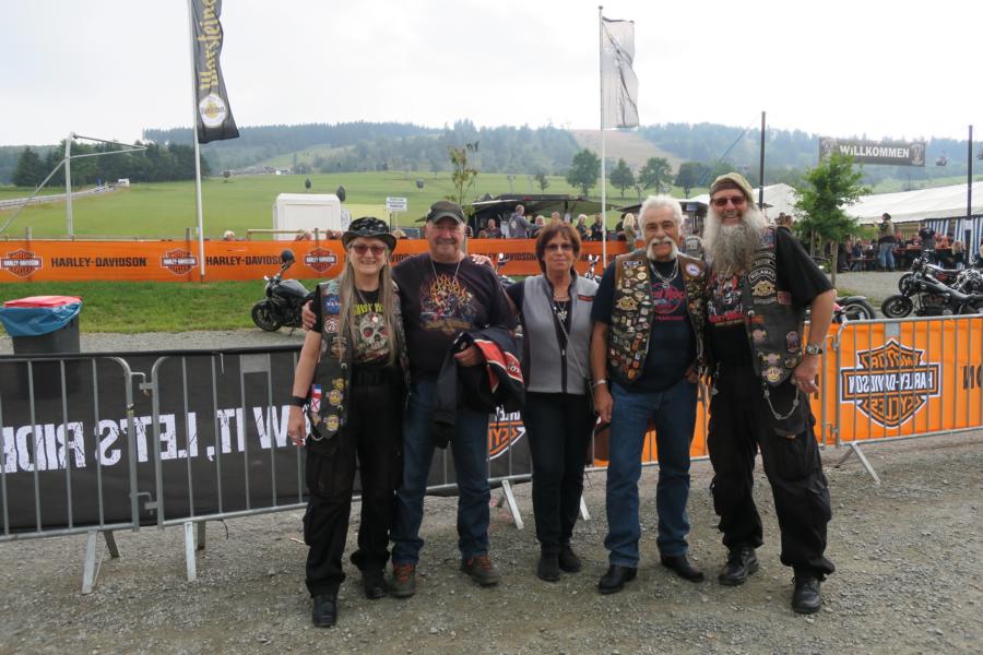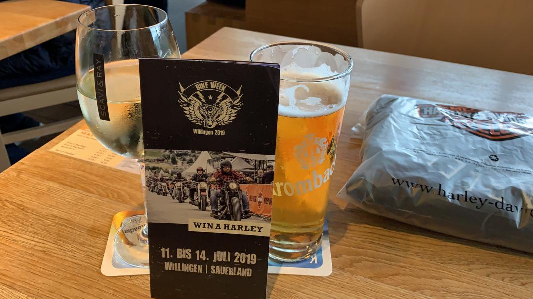 Kurzer Blick Richtung Eventgelände, kaum noch einer da, Zelt übervoll, also Taxi Richtung Willinger Brauhaus. Diese Idee hatten andere aber auch schon, komplett, wie verschiedene andere Gaststätten, Kneipen, welche aber teilweise wegen ihrer Musik schon im Vorfeld ausschieden, überfüllt waren. Als weitere Alternative stand dann noch für uns Leos Terrasse im Best Western Plus auf der Liste und richtig hier trafen sich die etwas „gesetzteren HD´ler“ zu Benzingesprächen, unter Hinzuziehung verschiedener Willinger Biersorten etc. und versuchten bzgl. des Wetters den nötigen Abstand zu gewinnen. Bevor es vergessen wird, richtig der Heimweg vollzog sich ebenfalls im Regen und am frühen Morgen gab es als Zugabe noch ein Gewitter. Samstags steht traditionell Siggis Skihütte auf dem Ettelsberg mit der gleichnamigen Seilbahn auf dem Programm; war auch eine gute Entscheidung, das Eventgelände glich einem Schlammfeld, auf das man versuchte mit Rindenmulch wieder einen begehbaren Bereich zu schaffen. Bei Siggi war es wie immer, alles voll, tolle Stimmung, draußen Nebel, natürlich Regen und die letzte Talfahrt der Seilbahn geht um 17.00 Uhr. Zu dem Zeitpunkt saßen wir aber mit unseren Freunden schon beim Essen in der empfehlenswerten Pizzeria Pie. Im Anschluss noch einmal kurz in das Hotel bzgl. trockener Bekleidung und wieder raus zum Event. Phasenweise gab es sogar einmal trockene Abschnitte, aber es kühlte ab bis auf 10 Grad, so dass man sich am späten Abend entschlossen, da wir bei der Verlosung auch nicht die entsprechenden Kombinationen hatten, die weiteren Aktivitäten in Leos Terrasse fortzusetzen.