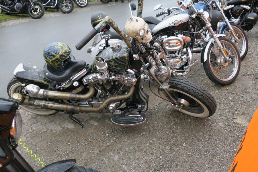 Aber in Willingen bzw. im Hotel angekommen, durfte man feststellen, dass der harte Kern wie immer vor Ort weilte. Also raus auf das Eventgelände und die trockene Phase genutzt um die geplanten Einkäufe zzgl. des Eventpins mit einem Los für den Gewinn einer neuen HD Sportster Iron, zügig zu erledigen. Auf dem Gelände waren die HD Händler Motomax mit ihren Standorten Hagen, Remscheid, Bochum, HD Bielefeld mit den Standorten Osnabrück und D-dorf, HD Kassel, sowie HD Pfeifer aus Kamen vertreten. Weitere ca. 100 Händler über Kess, Penzl, Jekyll & Hyde, weitere Customizer, sowie Händler für die HD, den HD Fahrer bzw. Fahrerin, als auch gegen Hunger und Durst, rundeten das Angebot ab.