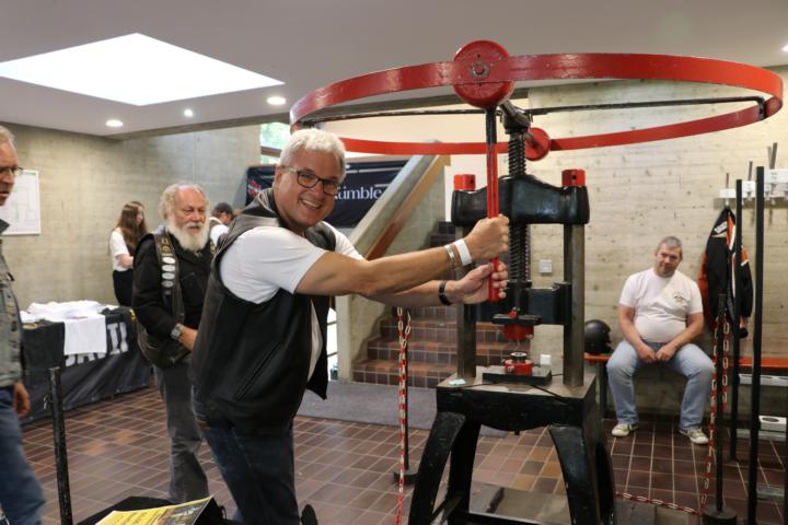 Um unser 25-jähriges Jubiläum in guter Erinnerung zu behalten hatte unser Ehrenmitglied Heinz die Idee eine selbst geprägte Gedenkmünze zu verkaufen. Es muss eine ganz schöne Arbeit gewesen sein, die 500 kg schwere Presse in den Vorraum unseres Veranstaltungsorts zu wuchten.