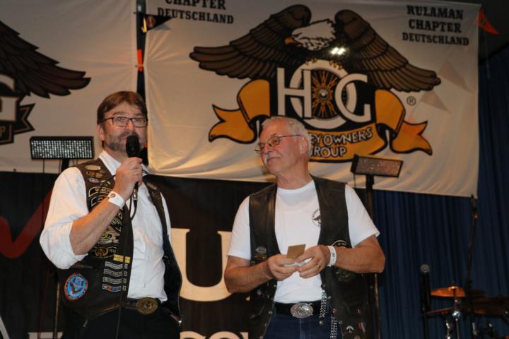 Am frühen Abend begann der offizielle Teil der Veranstaltung. Zuerst hielt unser Vorstand Diddi eine Rede bei dem er sich bei allen bedankte, die gekommen waren mit uns zu feiern und denjenigen Helfern, die viele Stunden investiert hatten, das Fest zu etwas Besonderem zu machen. Es folgte die Vorstellung der anwesenden Chapter und Teilnehmer: