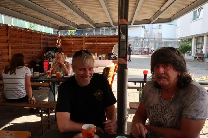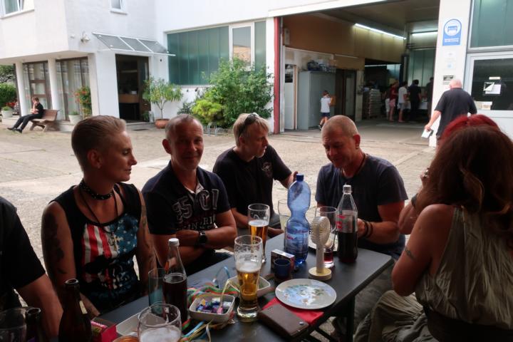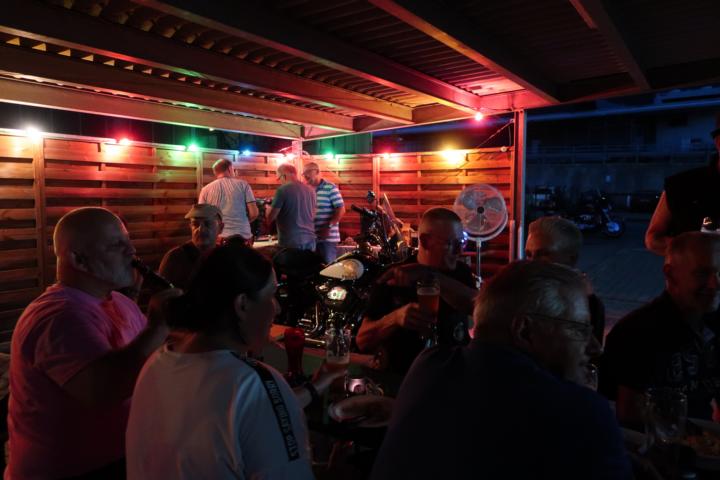 Nach und nach trudelten noch das eine oder andere Rulaman-Member ein. Wie man auf den Bilder sehen kann, wurden äußerst lebhafte Benzingespräche geführt. Nachdem sich das erste Essen langsam gesetzt hatte, ging es mit dem Abendessen weiter. Was ein Freund von Holger auf den Holzkohlengrill zauberte, war sehr sehr lecker. Auch die Salate und das selbstgebackene Brot ließen wir uns schmecken.