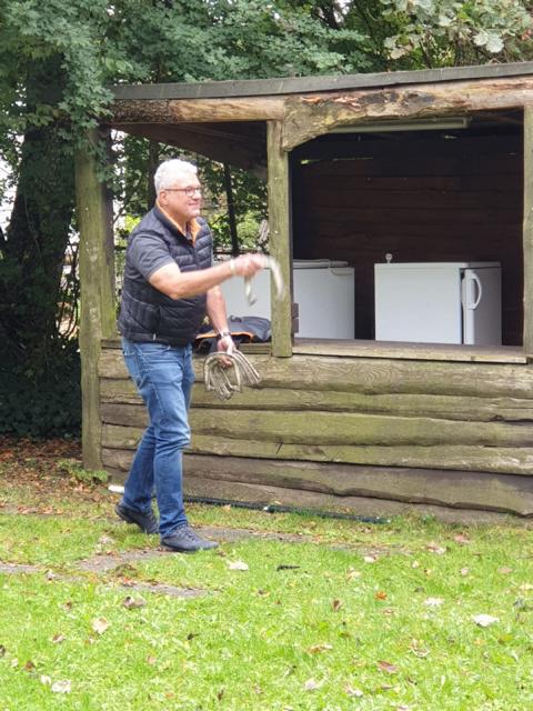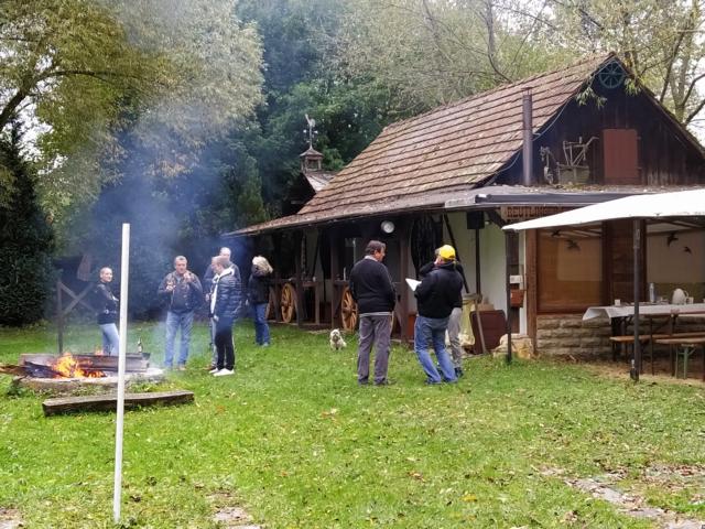 Nachdem wir uns bei kühlem Wetter mit heißem Kaffee und dem leckeren Kuchen gestärkt hatten konnte der Wettbewerb beginnen. Da wir diesen Wettbewerb nur einmal im Jahr zum 03.10. durchführen, gab es erst einmal eine Runde mit Probewürfen, bevor es dann ernst wurde. Dann versuchte man, mit 18 Würfen eine möglichst hohe Punktzahl zu erreichen. Der Refree vom Reutlinger Countryclub zählte die Punkte zusammen und gab diese an den Schriftführer weiter. Um Punkte zu bekommen zählt der Abstand vom Stab, ob das Hufeisen Kontakt zum Stab hat oder diesen ganz umschließt.