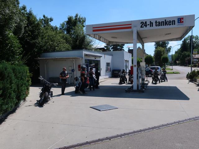 Beim Tanken merkte man, dass das Wetter Vollgas gab. Bei über 34 Grad kühlt auch der Fahrtwind nicht mehr. Aber Bine’s Mopped streikte bei diesen Temperaturen. Nach kurzem Demontieren, Rütteln und Schütteln an der Elektrik lief die Sportster jedoch ohne weitere Mucken wieder.