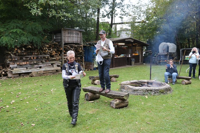 Auf der Huzzelranch angekommen, stärkte man sich erst einmal bei Hamburger, einer roten Wurst und Kaffee und Kuchen. Die Mitglieder des Reutlinger Country Clubs übernahmen wie jedes Jahr die Bewirtung.