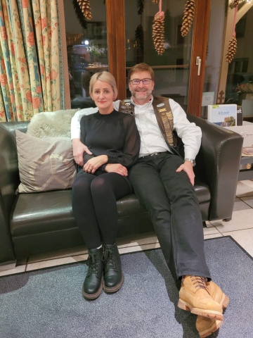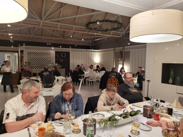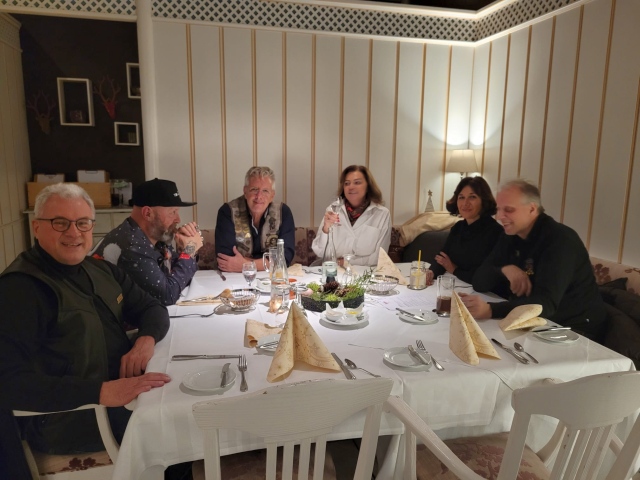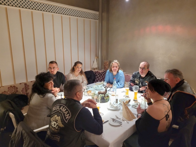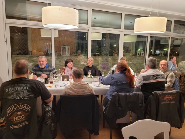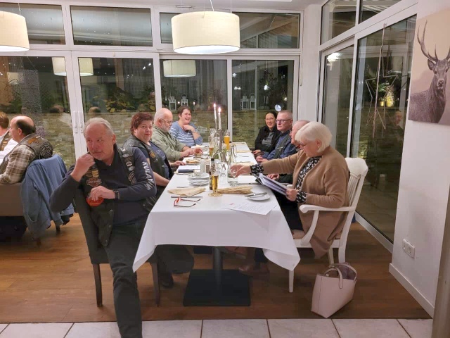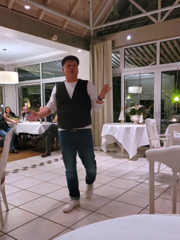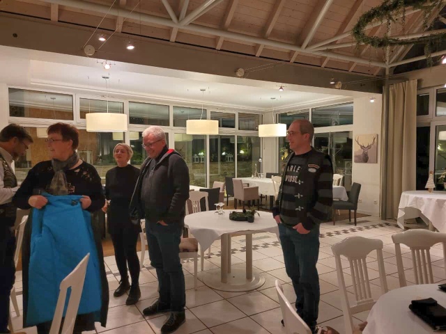 Unser Vice Roland hatte auch dieses Jahr wieder alles bestens organisiert: den Glühweinempfang im Außenbereich, ein gutes Essen und vor allem den schwäbischen Kabarettisten „Linkmichel“.
