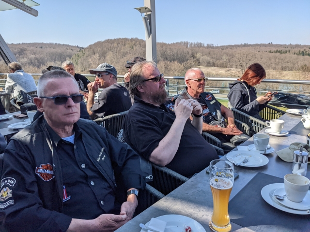 Bei Kaffee und Kuchen feierten wir den 28. Geburtstag von Rulaman. Es gab viel zu erzählen und auch Josef ein langjähriges Rulaman-Member und Wirt des Stausee-Hotels ließ es sich nicht nehmen trotz der brechend vollen Aussichtsterasse bei uns zu sitzen und etwas zu klönen.