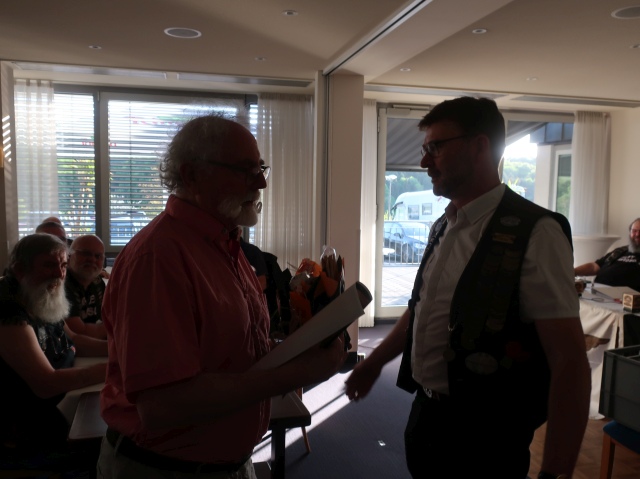 Ein Präsent in Form einer HD-Platkette erhielten die Ausschussmitgliedern als Dank für ihre ehrenamtliche Arbeit. Im Anschluss standen 10 Ehrungen für diejenigen Member an, die seit 10, 15 20 und 25 Jahren im Chapter aktiv. Den Membern wurde eine Urkunde vom Director und ein Präsent übergeben.