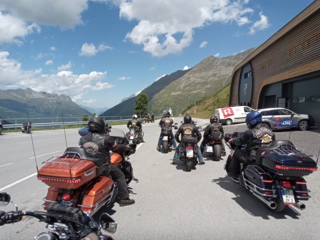 Am Samstag stand bei Bilderbuchwetter zuerst ein Besuch des Harley Clubs, Montafon an. Danach fuhren wir die Silveretta Hochalpenstraße bis zum See. Das blaugrüne Wasser des Sees wird von Bergen umrahmt bildet eine fantastische Kulisse. Nach dem obligatorischen Gruppenfoto fuhren wir zum Stausee Koops. Auf der Weiterfahrt streikte Horstmars Mopped. Ede wusste jedoch Rat und schnell war das Mopped wieder flott. Wir fuhren dann weiter zum „Weiberhimmel“, einem urigen Hotel und Restaurant, wo wir unser Mittagessen einnahmen.