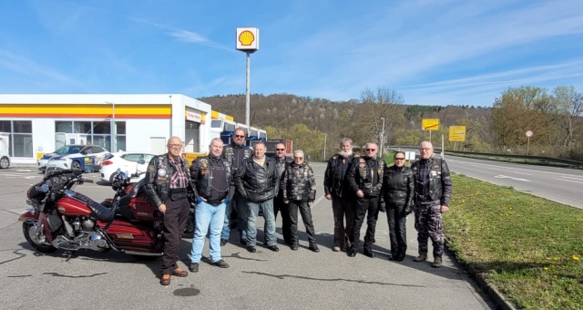 Witterungsbedingt hatte unser Road Captain Frank unsere tradionelle Ausfahrt am Karfreiteig auf den Ostermontag verschoben. Und so starteten 10 Member und 9 Maschinen pünktlich um 10.30 Uhr von der Shelltankstelle in Kirchentellinsfurt Richtung Nagold, Altensteig.