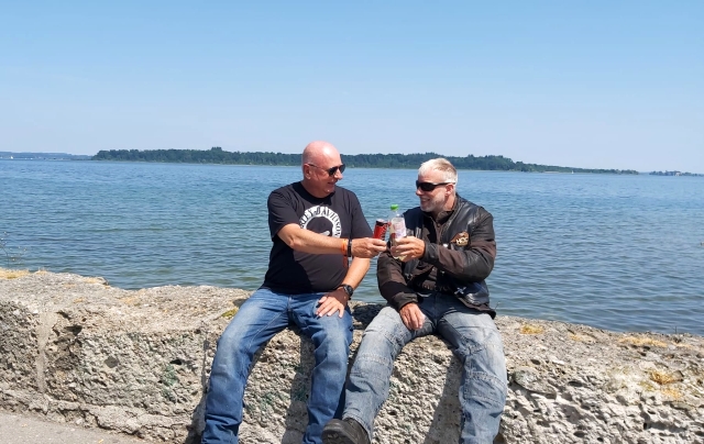 Los ging die Reise am Montag zum Mega-Event in Budapest anlässlich des 120-jährigen Bestehen von HD in Mühlhausen auf dem Rastplatz neben der Autobahn. Wir, das sind Horst, Jeane und die Ex-Rulaman Member Martina, Thomas und ich, hatten beschlossen, einen guten Teil der Strecke auf der Landstraße nach Budapest zu fahren. Die erste Übernachtung war in der Nähe von Linz. Abends ließen wir den Tag in einem netten, kleinen Biergarten ausklingen.Am Dienstag fuhren wir weiter über Melk in Österreich wo wir kurz Rast machten und das Kloster und die Wallfahrtskirche bewunderten. Die Temperaturen stiegen gefühlt von Minute zu Minute. Angekommen in Ungarn fuhren wir einen Teil Autobahn, auf der ein richtig heftiger Seitenwind das Fahren denjenigen erschwerte, die keine Scheibe hatten.