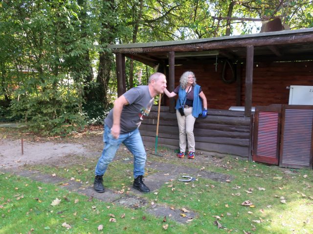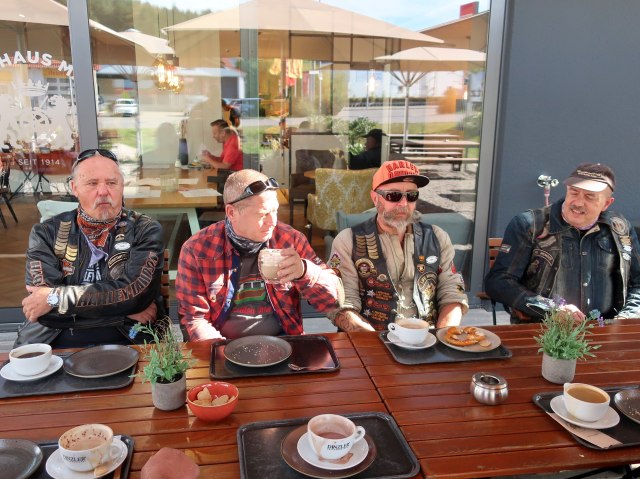 Am 03. Oktober fand zum Saisonabschluss wie jedes Jahr unser Hufeisenwerfen auf der Hutzelranch statt. Aber vorher gab es noch eine Ausfahrt bei sommerlichen Temperaturen über die Schwäbische Alb. Diese wurde von unserem Road-Captain Nobs geführt. Er hatte sich bei der Planung ins Zeug gelegt und eine schöne, wenig befahrene Strecke herausgesucht.Es machte so richtig Spaß die Harley durch die Kurven zu treiben. Unterwegs legten wir noch eine kurze Pause in einer Bäckerei ein, um uns für die nachfolgende Herausforderung zu stärken.