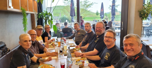 9 Member trafen sich bei Sonnenschein pünktlich an der Shell Tankstelle in Kirchentellinsfurt und machten sich mit RC Martin auf den Weg über Tübingen, Ammerbuch, Haigerloch zum Schieferhaus. Vor Ort konnte von Sonnenschein keine Rede mehr sein. Bei der Einfahrt zum Parkplatz kamen die ersten Tropfen vom Himmel.