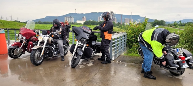 Also nichts wie rein und erst einmal abwarten und lecker Essen. Nachdem der Regen nachgelassen hatte, machten wir uns statt dem geplanten Abstecher über die Schwäbische Alb direkt auf den Rückweg. Auch wenn das Wetter nicht ganz mitspielte war es trotzdem eine schöne Tour. Nun steht in den nächsten Tagen das Putzen des Bikes auf dem Programm.