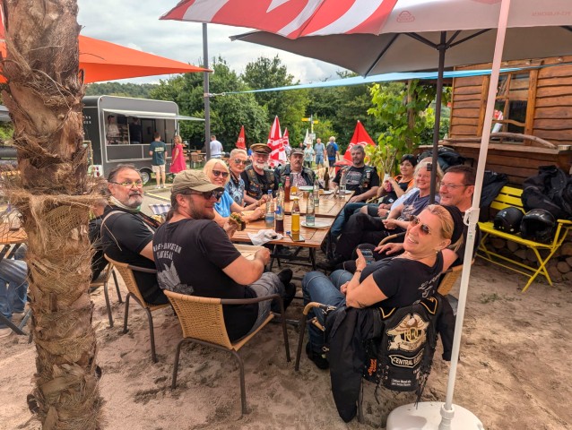 Bei bestem Moppedwetter starteten wir in Kirchentellinsfurt. Unser erster Stopp war am bekannten Motorrad-Treffpunkt Glemseck, wo das Fan City Chapter aus Karlsruhe auf uns wartete.