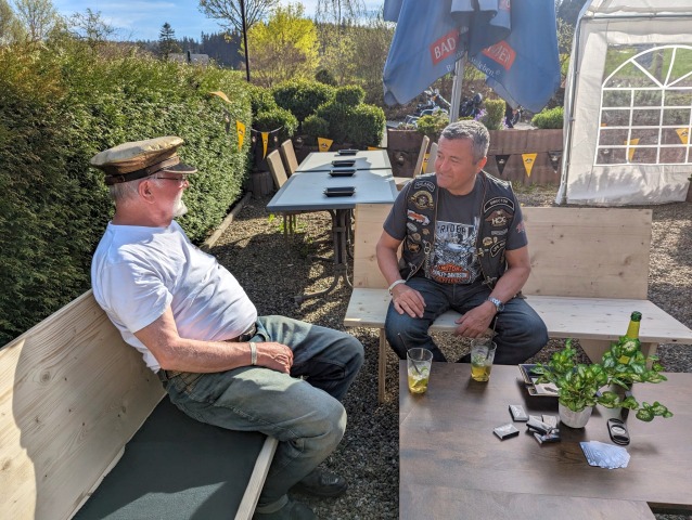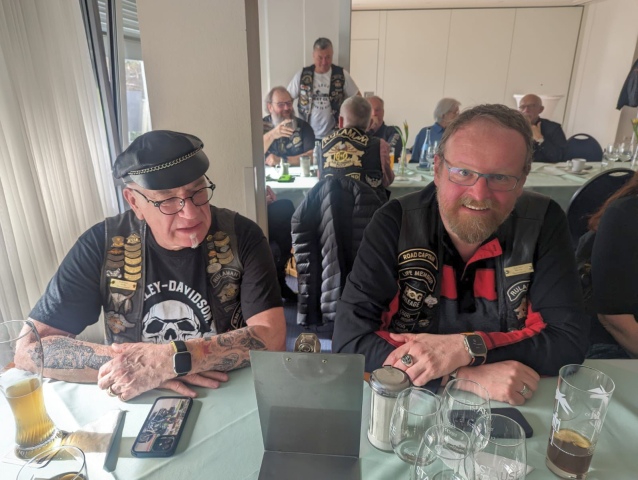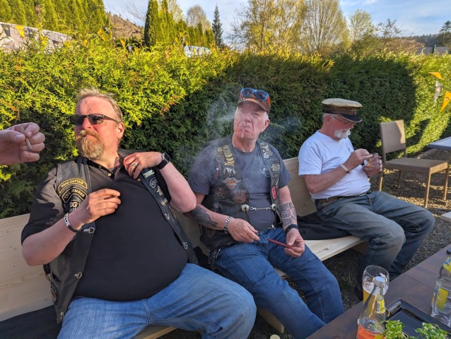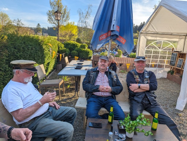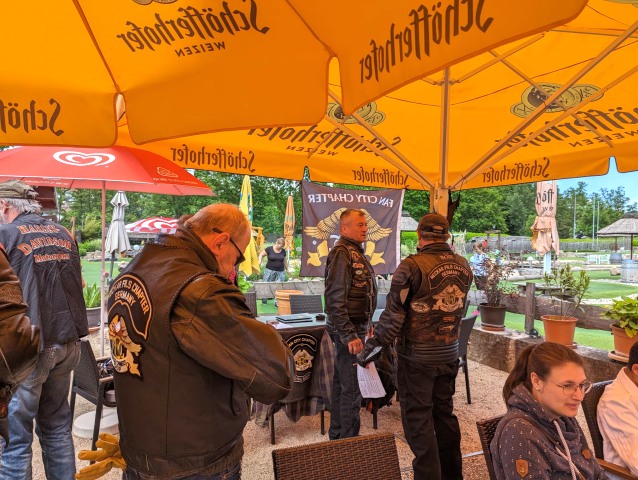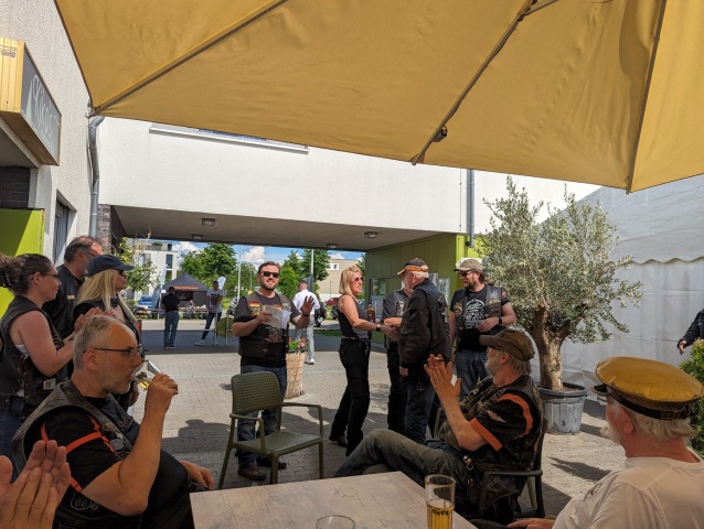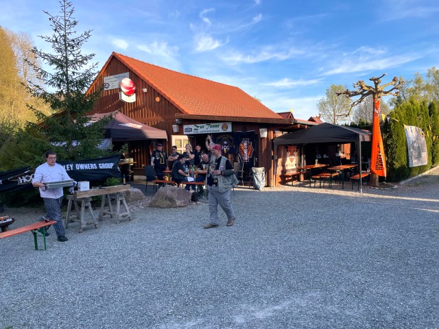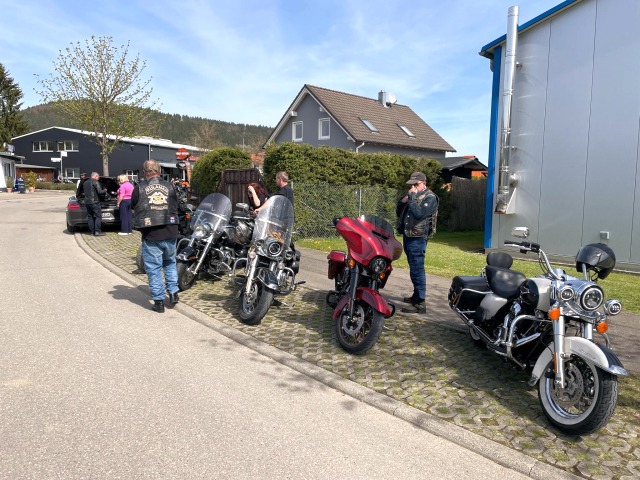 Die Einladung des Honberg-Chapters zur Einstandsparty veranlasste, dass sich 8 Member mit 7 Bikes auf den Weg zu HD Matthies in Nendingen aufmachten, wo man sich mit dem Honberg-Chapter traf.